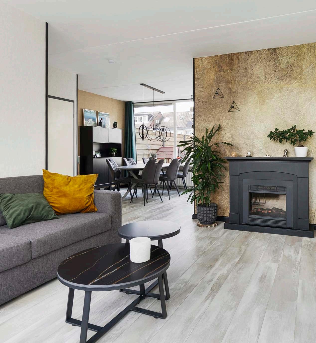 De lichte Z-woonkamer is een van de belangrijkste trekpleisters van de woning. Dankzij de grote ramen en de open indeling baadt de ruimte in natuurlijk licht. Dit maakt de woonkamer de perfecte plek voor gezelligheid, ontspanning en familietijd. De Z-vorm biedt bovendien een speelse en praktische indeling.