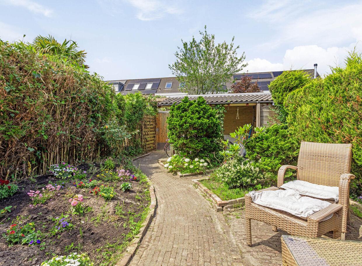 Deze tuin op het westen is een ware oase van rust en groen. Verzorgd aangelegd, met voldoende ruimte voor een speeltoestel voor de kinderen, een moestuintje, of een comfortabele loungeset. Hier kun je genieten van lange zomeravonden, barbecueën met vrienden, of simpelweg ontspannen met een goed boek terwijl de zon ondergaat.