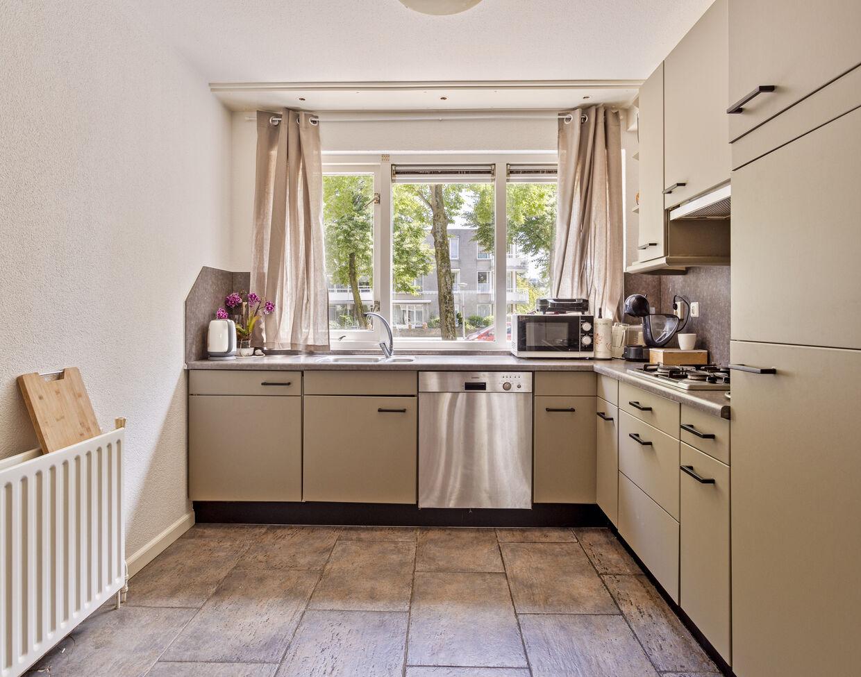 De open keuken aan de voorzijde is lekker ruim en voorzien van alle gemakken.