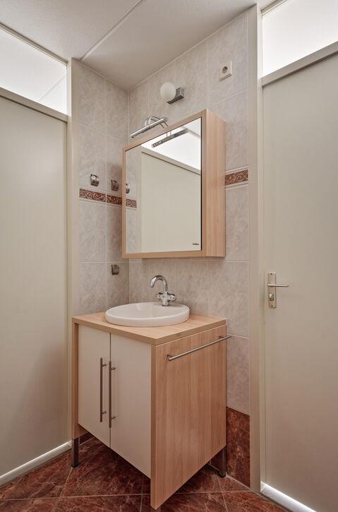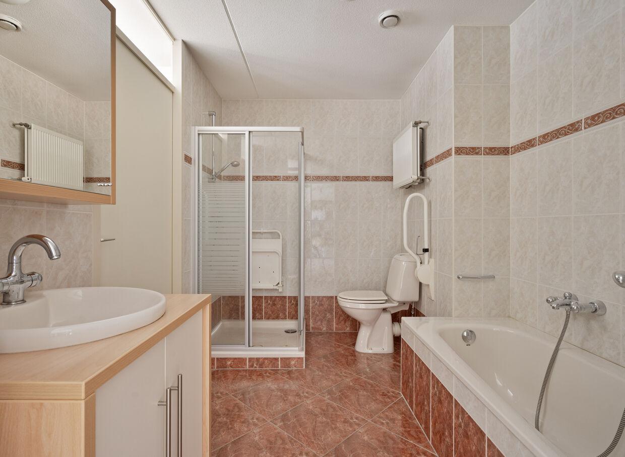 Eencompletebadkamer:Ontspanineenbadof verfris uzelf in de aparte douche.