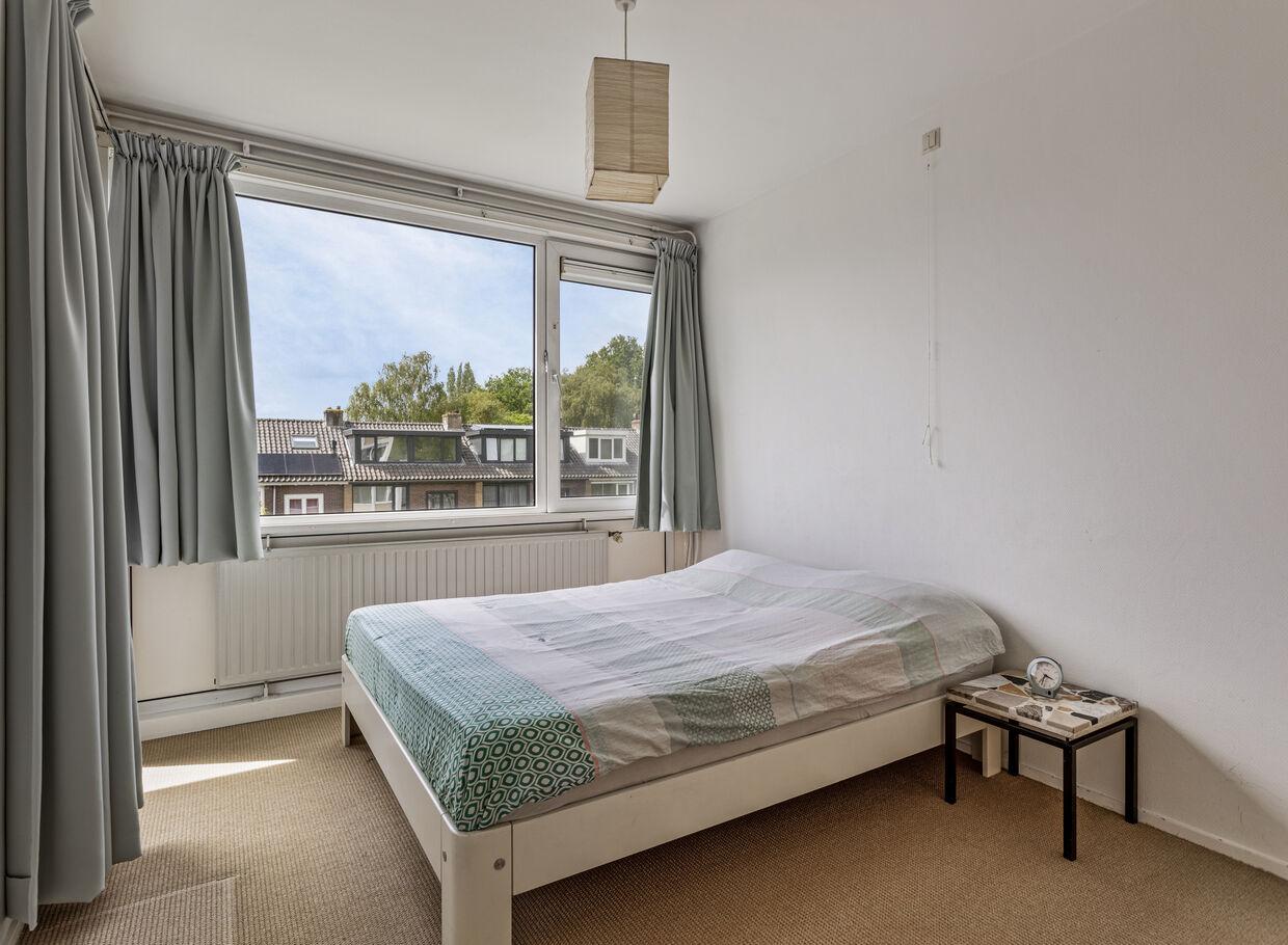Het appartement beschikt over twee goede slaapkamers waarvan één toegang heeft tot het balkon. In de grootste slaapkamer past moeiteloos een tweepersoonsbed en er bevinden zich vaste kledingkasten, terwijl de andere kamer zeer geschikt is als werkruimte of logeerkamer.