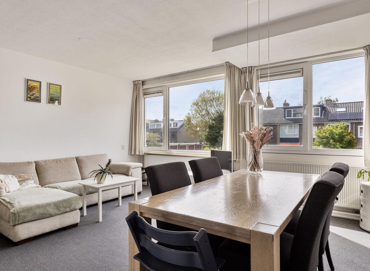 Meteenwoonoppervlaktevan62m²biedtde woninggenoegruimtevooreencomfortabelestart. Delichtewoonkamermetgroteramenis uitnodigendenbiedtvoldoenderuimtevoorzowel een zit- als een eethoek.