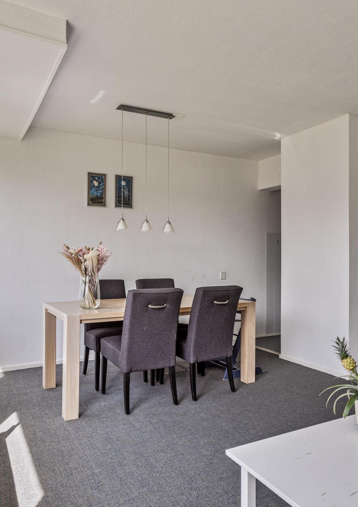 A nice, bright, and practically arranged living/dining room. With a smart layout and enough space for both a seating area and a dining area, the living room offers plenty of space. The current owners have also created a small workspace here.