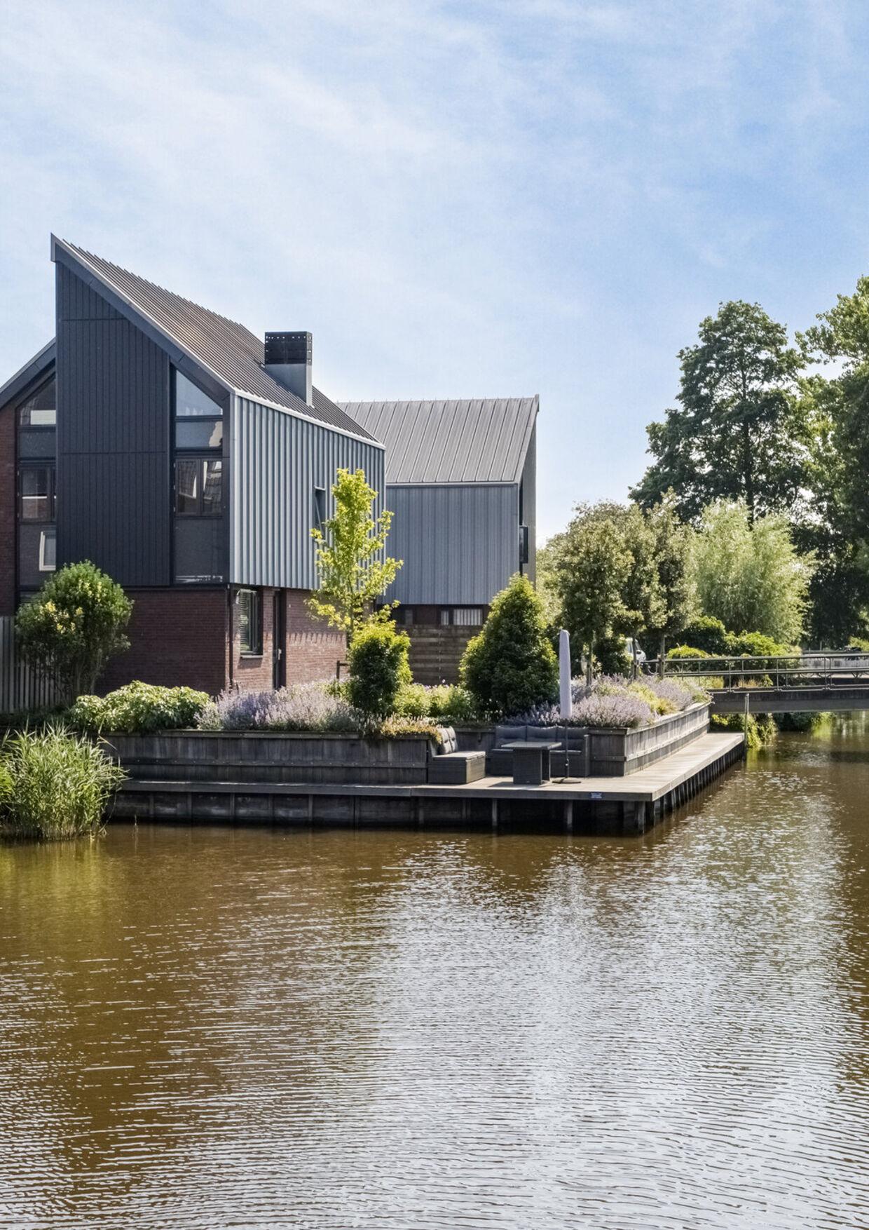 De tuin, oorspronkelijk één groot grasveld, heeft een ware metamorfose ondergaan, met als laatste aanvulling een terras aan het water. Dit is een heerlijke plek om een hengeltje uit te werpen en op zomeravonden te genieten van de avondzon.