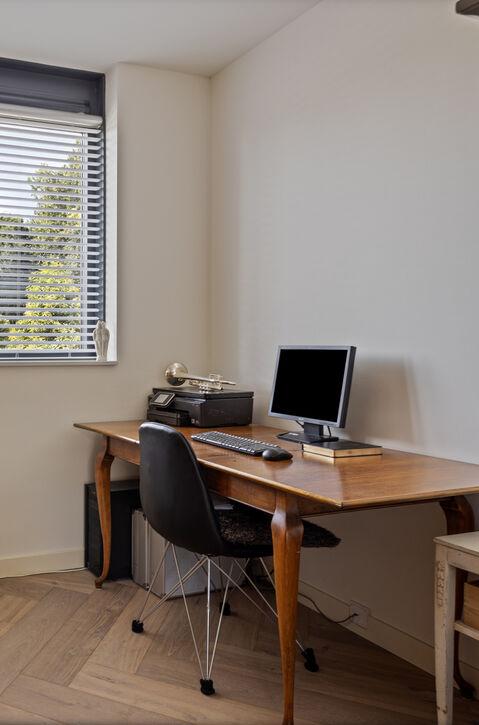 Ook is er een werkkamer, ideaal voor thuiswerken of als rustige plek voor studeren. De werkkamer is strategisch geplaatst, zodat je in alle rust en privacy kunt werken zonder afgeleid te worden door het dagelijks leven in huis.