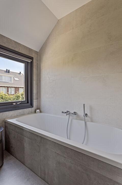 Er is een prachtige badkamer aanwezig. Deze heeft goede afmetingen, is voorzien van natuurlijk daglicht en biedt een perfecte plek om de dag fris te starten en ontspannen af te sluiten.