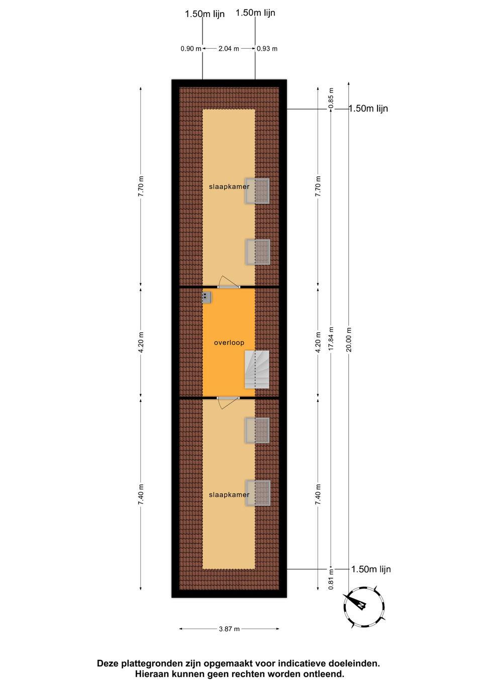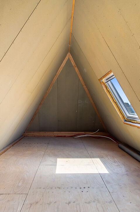 Middelsdevastetrapisdetweedeverdieping bereikbaar.Opdeoverloopbevindtzichdecv-ketel endewasmachine-/drogeraansluiting.De verdiepingbiedtooktweeslaapkamersmetgrote dakramen.Hierisookdemogelijkheidomeenkleine badkamer of keukentje te realiseren.