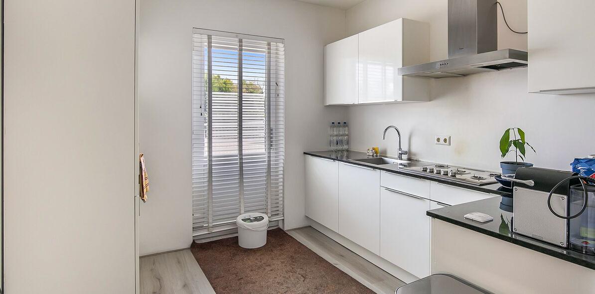 De keuken is netjes afgewerkt in wit hoogglans en voorzien van inbouwapparatuur zoals een koelkast, vrieslades, inductiekookplaat, afzuigkap, vaatwasser en 2 combi ovens.