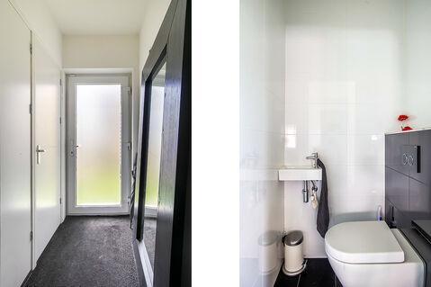 Royaleentreemetopmaatgemaaktetrapnaarde eersteverdiepingenvoldoendebergruimteonderde trapvoorjassenenschoenen.Debeganegrondis verdeeldineenriantewoonkamermetdubbele openslaandedeurennaarhetterras,eenfijne hobbyruimte/televisieruimteinhetmiddenvande woningeneenroyalewoonkeukenaande achterzijde.Dekeukenisnetjesafgewerktinwit hoogglansenvoorzienvaninbouwapparatuurzoals eenkoelkast,vrieslades,inductiekookplaat, afzuigkap, vaatwasser en 2 combi ovens.