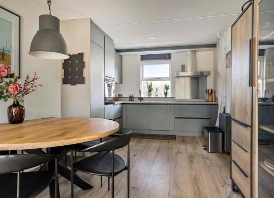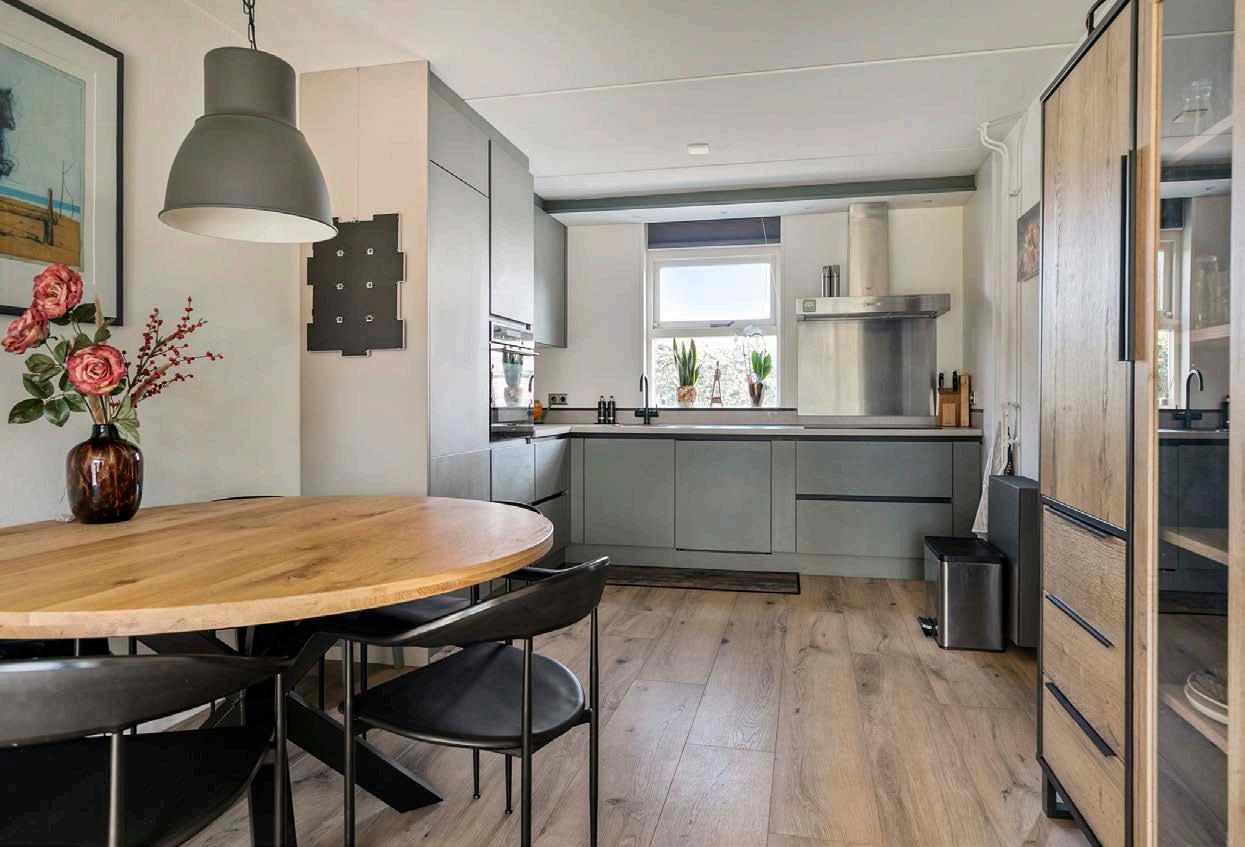 Aan de voorzijde ligt de moderne keuken (2025), waar koken een feestje wordt. De keuken biedt alles wat je nodig hebt: een inductiekookplaat met maar liefst 5 zones, een combimagnetron en een Quooker die direct kokend water levert. Zet een kop verse thee of bereid een heerlijk diner voor het gezin, in deze keuken kan het allemaal.