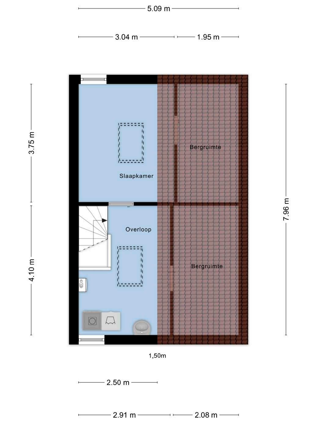 Op de eerste verdieping bevinden zich twee royale slaapkamers en een nette badkamer. Door middel van de grote raampartijen bieden de slaapkamers een aangename hoeveelheid daglichttoetreding. Overigens is er de mogelijkheid om de royale ouderslaapkamer op te splitsen, mocht je extra flexibiliteit nodig hebben. De badkamer is fris en praktisch, met een douche, een wastafelmeubel en een tweede toilet.