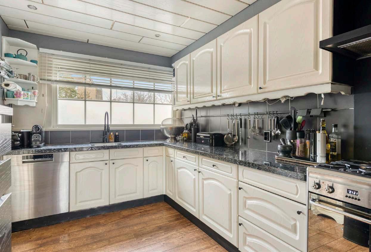 Vanuit de hal stap je in de open keuken. Deze is straatgericht en voorzien van diverse inbouwapparatuur.