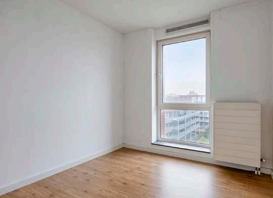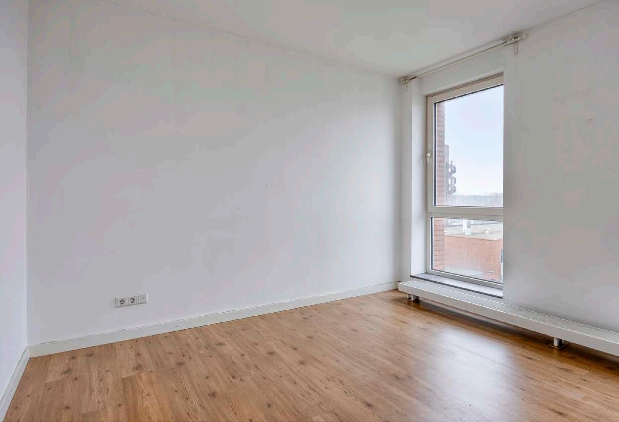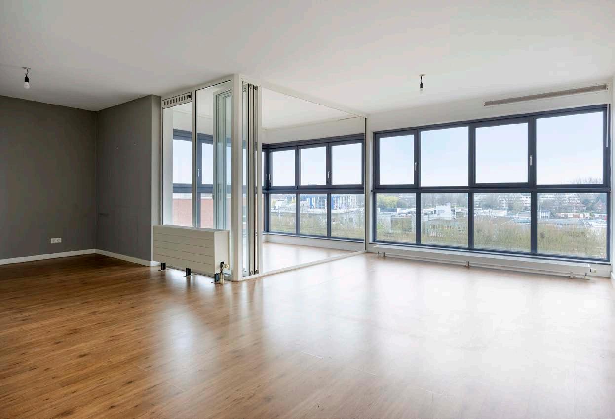 Het kloppend hart van dit appartement is zonder twijfel de lichte en royale woonkamer. Dankzij de hoekligging heb je hier een overvloed aan natuurlijk licht dat door de grote ramen aan twee zijden naar binnen valt. Dit maakt de ruimte niet alleen enorm sfeervol, maar het zorgt ook voor een aangename, open atmosfeer waarin je fantastische herinneringen creëert. De strakke vloer en neutrale wanden vormen een perfecte basis voor het realiseren van jouw persoonlijke stijl