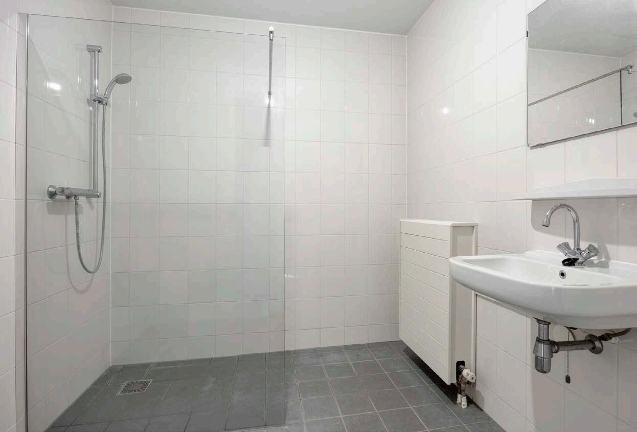 De badkamer is de plek waar je je dag begint en eindigt, en in dit appartement is die ruimte perfect ontworpen voor comfort en efficiëntie. Uitgerust met een ruime inloopdouche, biedt deze badkamer een nette, moderne uitstraling. Het glas creëert een open gevoel en laat het licht vrij door de ruimte stromen. De functionele opzet maakt het een genot om hier onder een verfrissende straal te stappen na een drukke dag.
