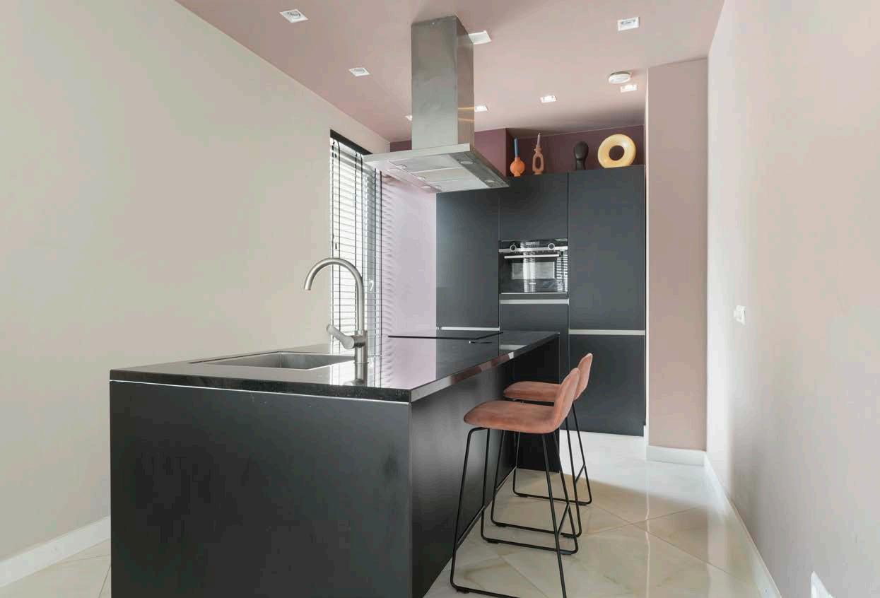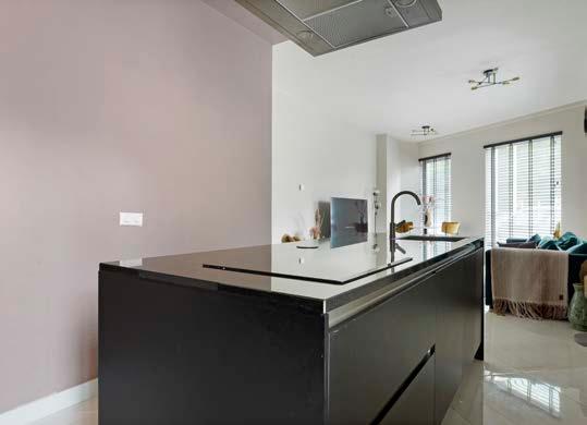 De moderne open keuken (2020) is voorzien van een kook- en spoeleiland, inductiekookplaat, afzuigkap, vaatwasser, koelkast, vriezer en ruime kastruimte.