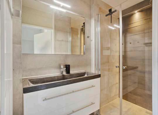 De badkamer is modern, goed onderhouden en volledig betegeld. Je beschikt hier over een douche en een wastafelmeubel. Daarnaast is er een separaat toilet in de hal, wat zorgt voor extra comfort in het dagelijks gebruik.