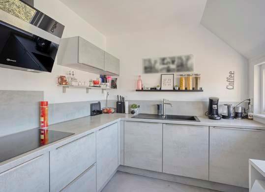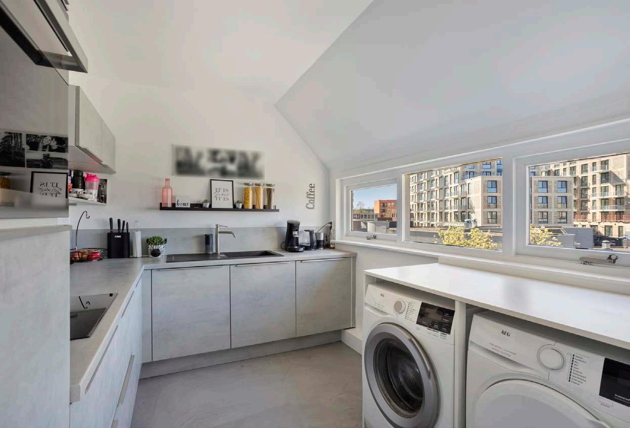 De moderne keuken is licht en praktisch ingericht dankzij het aanwezige raam. Hier heb je alle gemakken bij de hand om lekker te koken. Ook is hier de aansluiting voor de wasmachine netjes weggewerkt, wat zorgt voor extra gebruiksgemak.