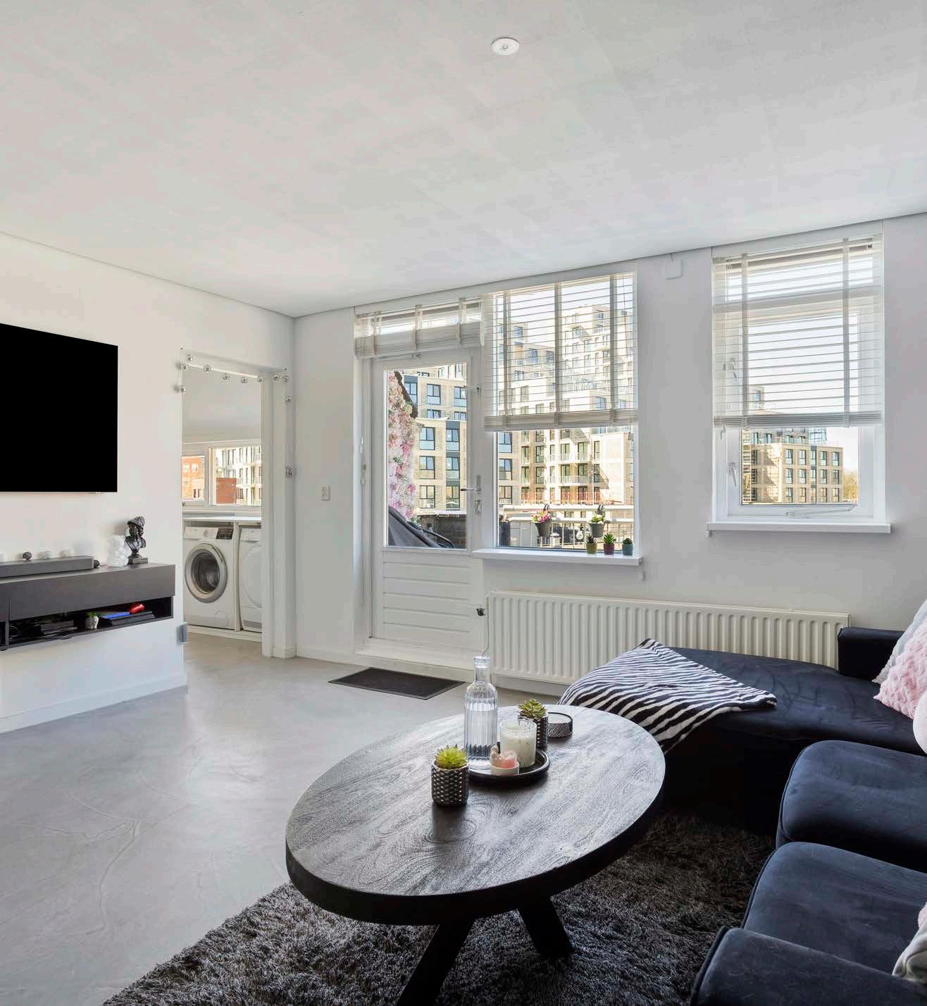 De woonkamer is royaal en heerlijk licht. Er is volop ruimte voor een gezellige zithoek én een eettafel waar je met vrienden of familie kunt tafelen. Vanuit de woonkamer stap je zo het balkon op, wat zorgt voor een fijne verbinding tussen binnen en buiten.