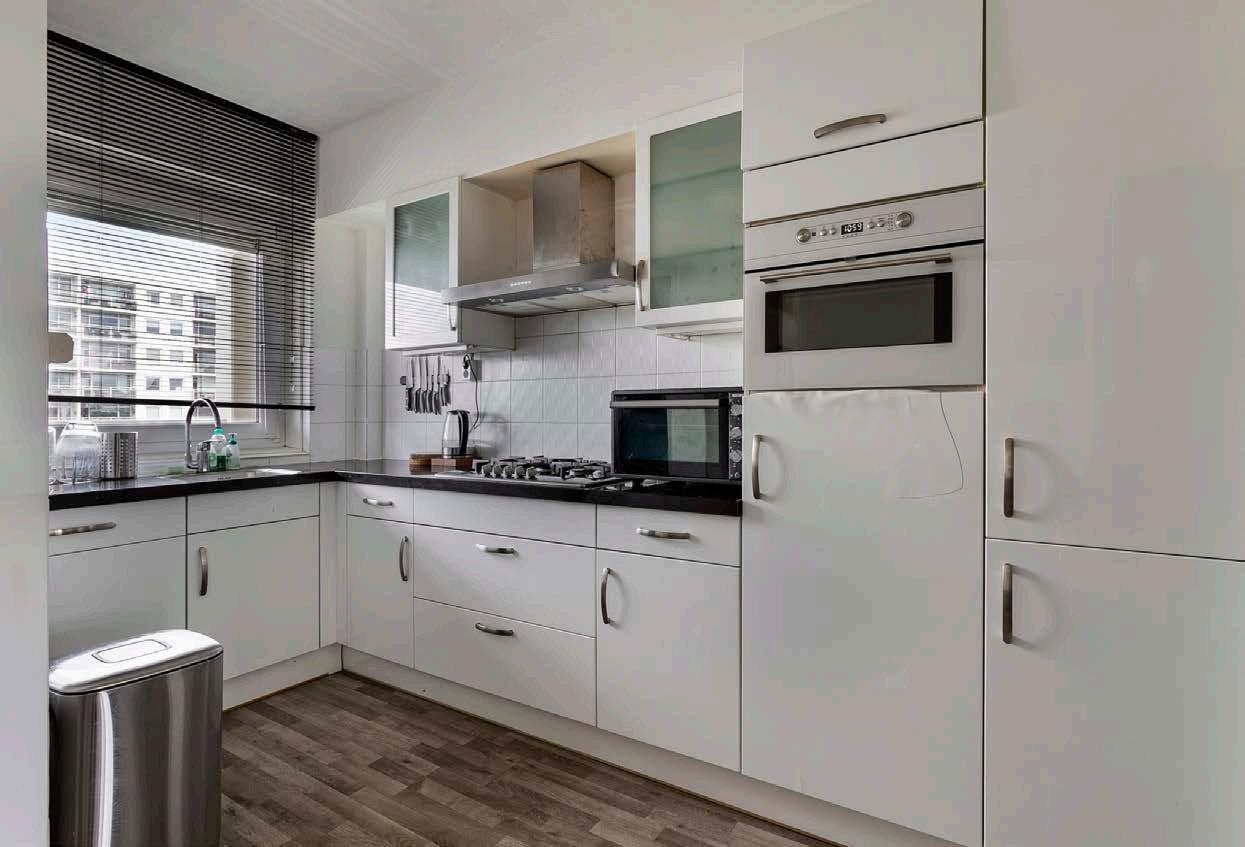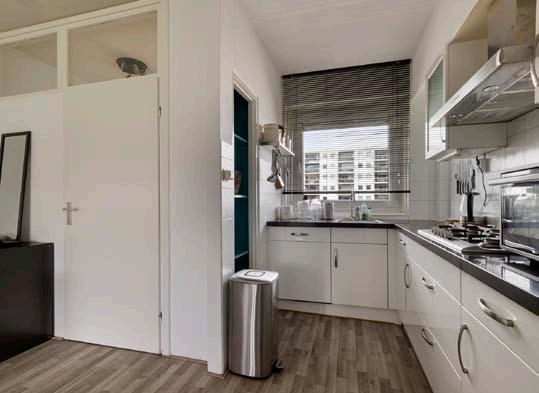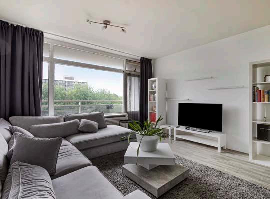 Het is een heerlijke woning, heel licht. Vlak bij winkels en openbaar vervoer. Ik heb eerst in een kleiner appartement in het gebouw gewoond en omdat zo goed beviel ben ik op dezelfde plek groter gaan wonen.