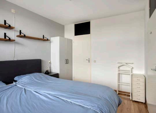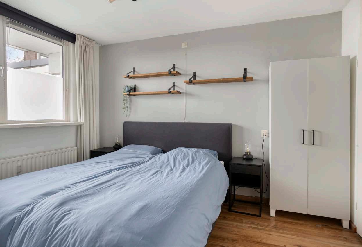 De slaapkamer biedt een rustige en comfortabele plek om te ontspannen. Er is voldoende ruimte voor een groot bed en een kledingkast, waardoor je de kamer naar eigen wens kunt inrichten. Dankzij de praktische indeling en de ligging in het appartement geniet je hier van een fijne nachtrust. Een ideale ruimte om je even terug te trekken na een drukke dag.