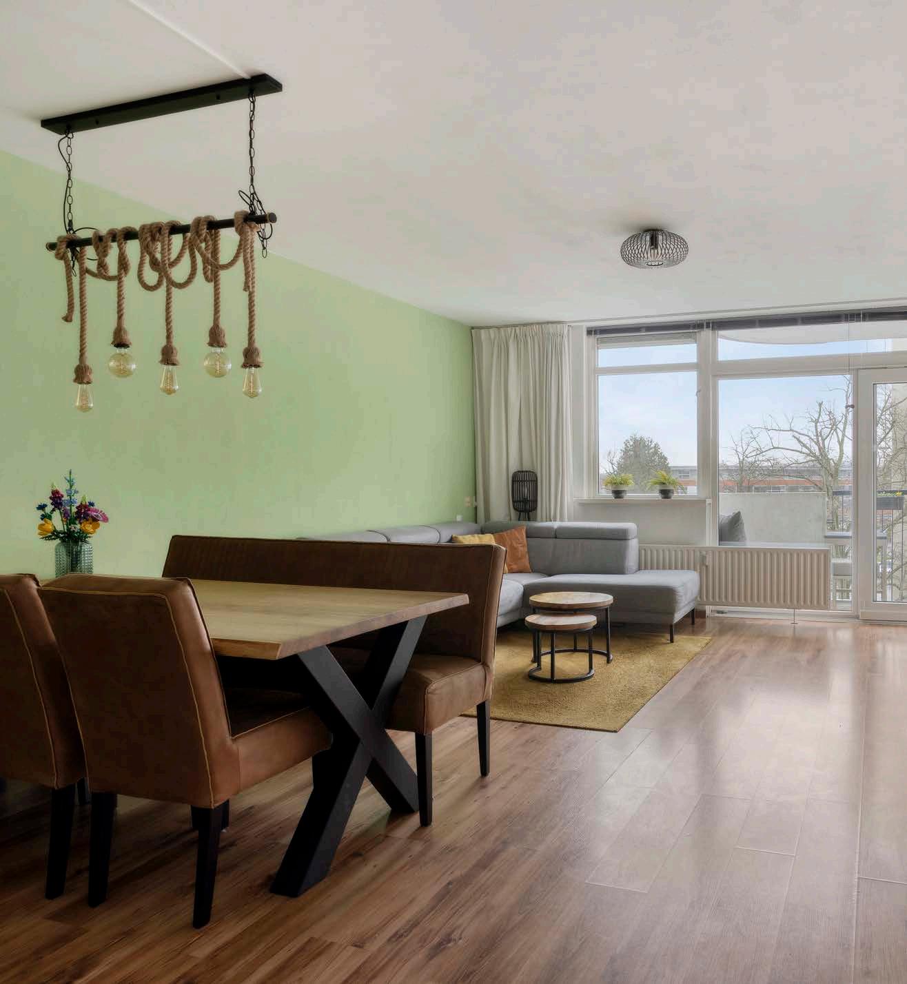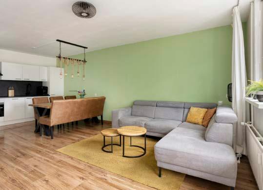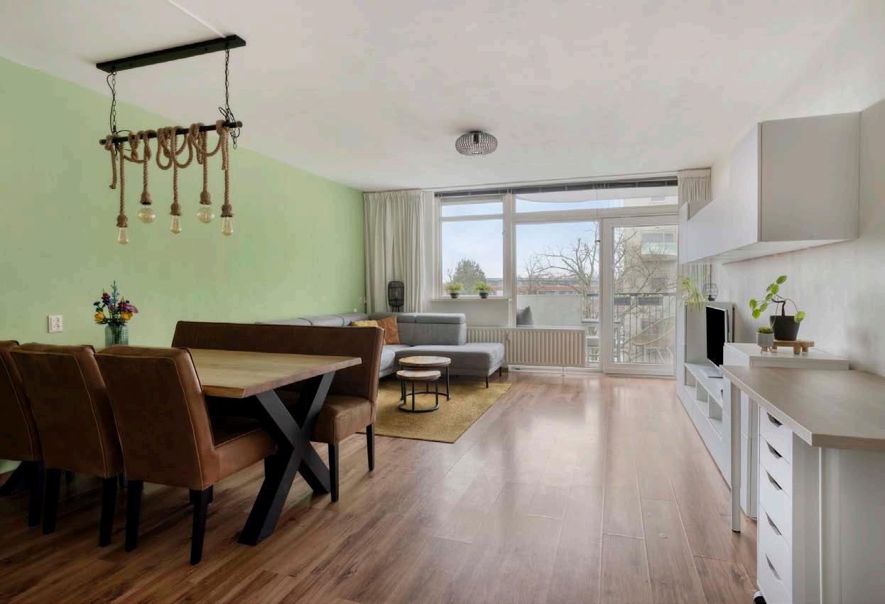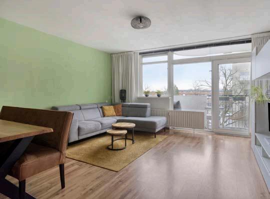 De lichte woonkamer biedt een prettige leefruimte met volop mogelijkheden. Er is voldoende ruimte voor een royale zithoek en een eettafel, ideaal voor zowel ontspannen avonden als gezellige diners. Vanuit de woonkamer stap je zo het knusse balkon op, waar je kunt genieten van vrij uitzicht en een moment van rust.