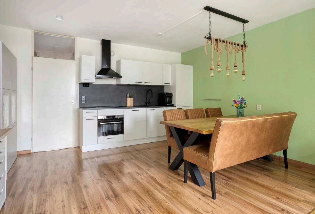 De open keuken (2021) sluit aan op de woonkamer dankzij de open indeling. Deze moderne keuken is voorzien van diverse inbouwapparatuur, waaronder een inductiekookplaat, afzuigkap, vaatwasser, oven, koelkast en vriezer.