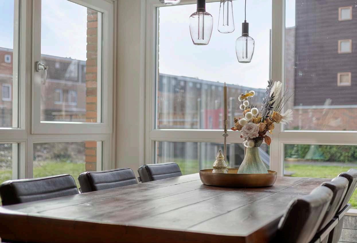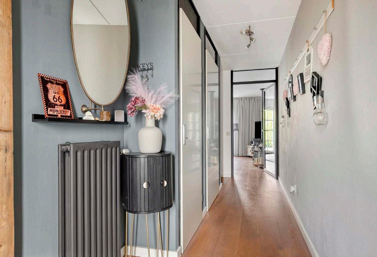 Bij aankomst valt direct de verzorgde voortuin op, die de woning een uitnodigende uitstraling geeft. Via de entree stap je binnen in de hal, waar je toegang hebt tot het toilet, de meterkast en de trap naar de verdiepingen. De woonkamer bevindt zich aan de achterzijde en betreft een royale leefruimte. Hier geniet je van een comfortabele zithoek met uitzicht op de tuin. Dankzij de openslaande deuren haal je buiten moeiteloos naar binnen wat perfect is tijdens zonnige dagen en lange zomeravonden.