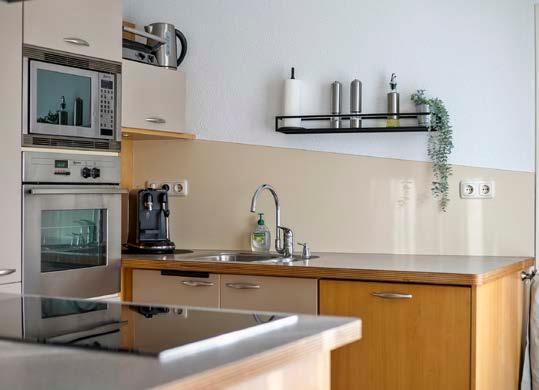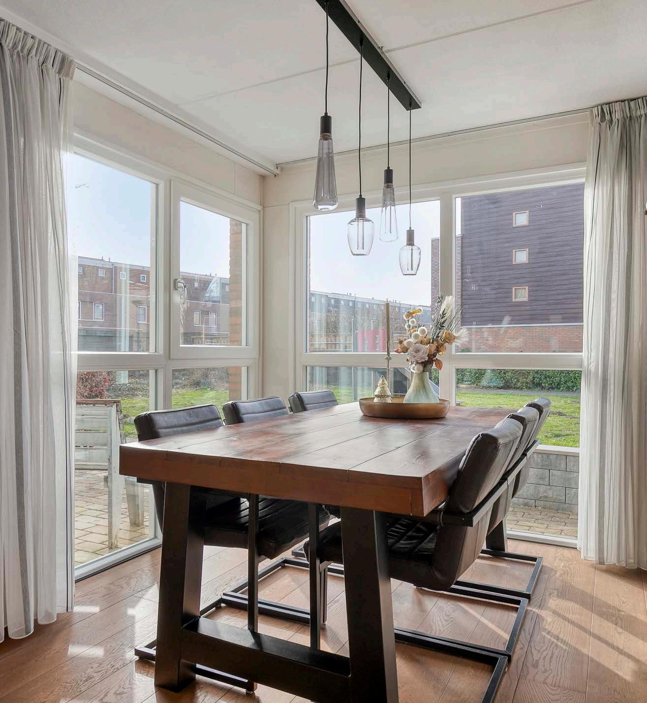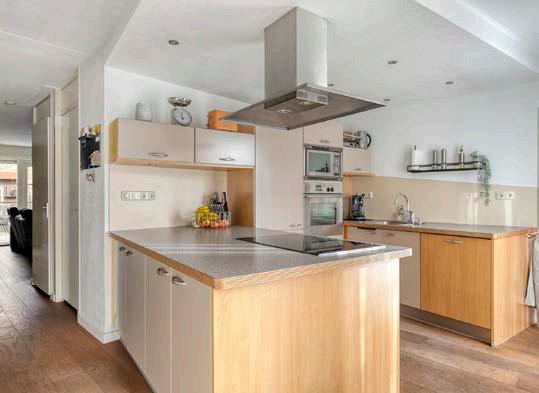 Aan de voorzijde van de woning bevindt zich de woonkeuken. Deze is voorzien van diverse inbouwapparatuur, waaronder een inductiekookplaat, combimagnetron en koel-/ vriescombinatie. Er is volop ruimte voor een grote eettafel, waardoor dit eveneens een heerlijke plek is om samen te komen. Tussen de keuken en woonkamer bevindt zich een praktische wasruimte.