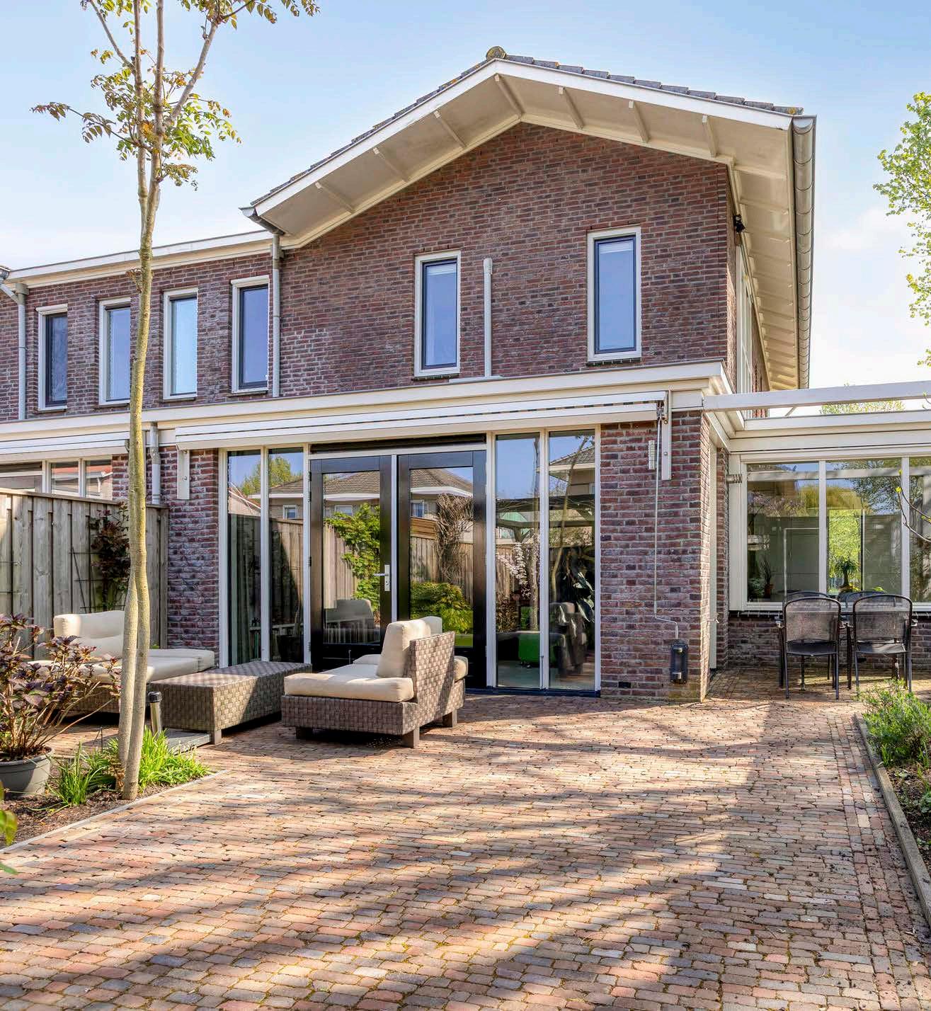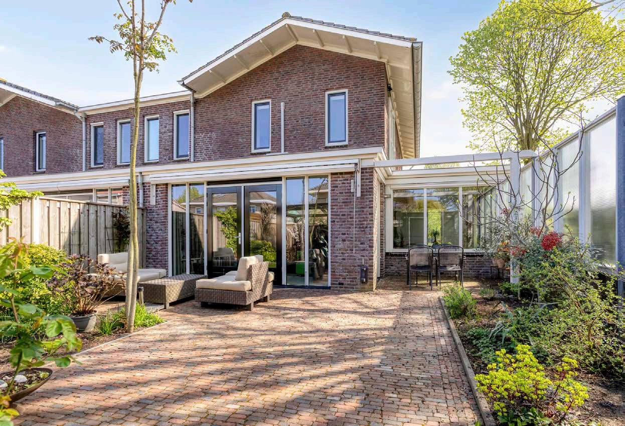 De entree straalt meteen de perfecte mix uit van licht en ruimte. Vanuit de hal, met toilet en trapopgang, betreed je de woonkamer: een royale leefruimte waar sfeer en functionaliteit samenkomen. Het lichte kleurgebruik, de vloerverwarming, de moderne gashaard en de grote tuingerichte raampartijen zorgen voor een huiselijke én luxueuze uitstraling. Via de dubbele deuren stap je zo de zonnige achtertuin in, waar een zorgvuldig aangelegde mix van bestrating, beplanting en een overkapping je uitnodigt om optimaal te ontspannen.