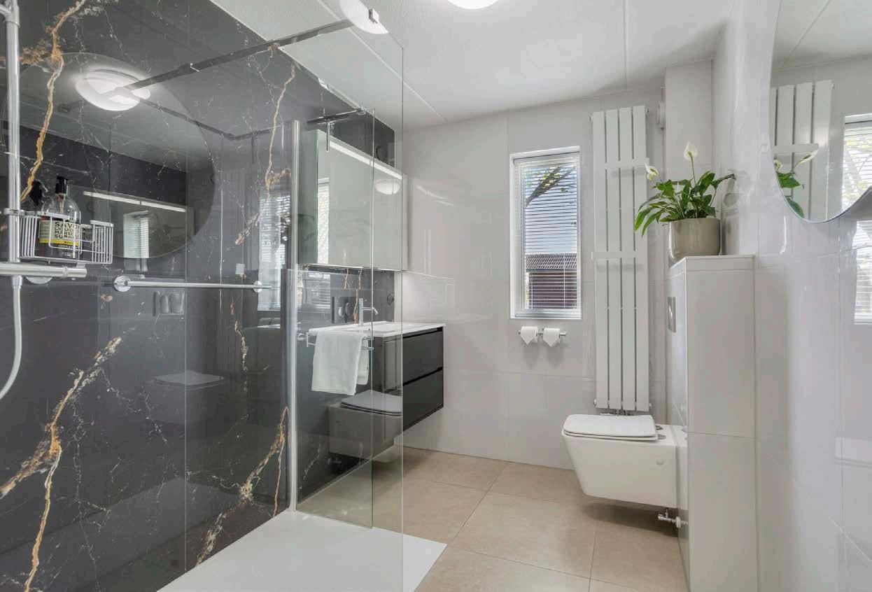 De badkamer is in 2024 volledig gerenoveerd en dat is te zien. Luxe en comfort staan centraal: een strakke inloopdouche, toilet met bidet en een wastafelmeubel met anti-vingerafdruklaag zorgen voor een moderne en tegelijk praktische ruimte waarin je met plezier aan je dag begint. Tot slot zijn op de etage nog twee vaste kasten. Één bevat de wasmachineaansluiting, de ander biedt ruimte aan de cv-ketel. Via de overloop is er met een vlizotrap toegang tot de bergzolder.
