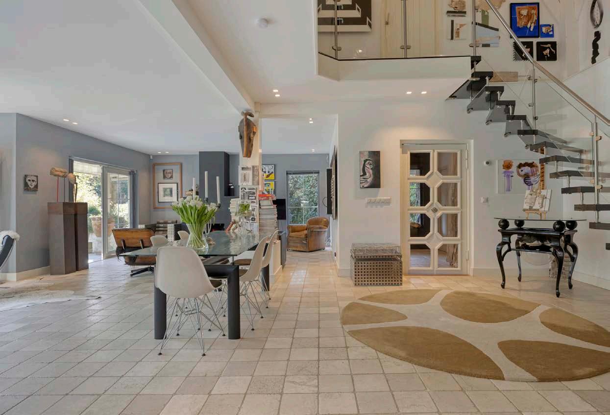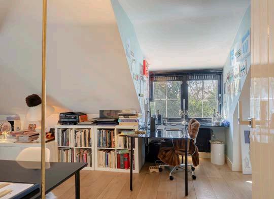 Op de begane grond vindt u een extra slaapkamer en een werkkamer, evenals een volledig uitgeruste badkamer met ligbad, inloopdouche, dubbele wastafel en een tweede toilet. Dankzij deze doordachte indeling is gelijkvloers wonen eveneens mogelijk.