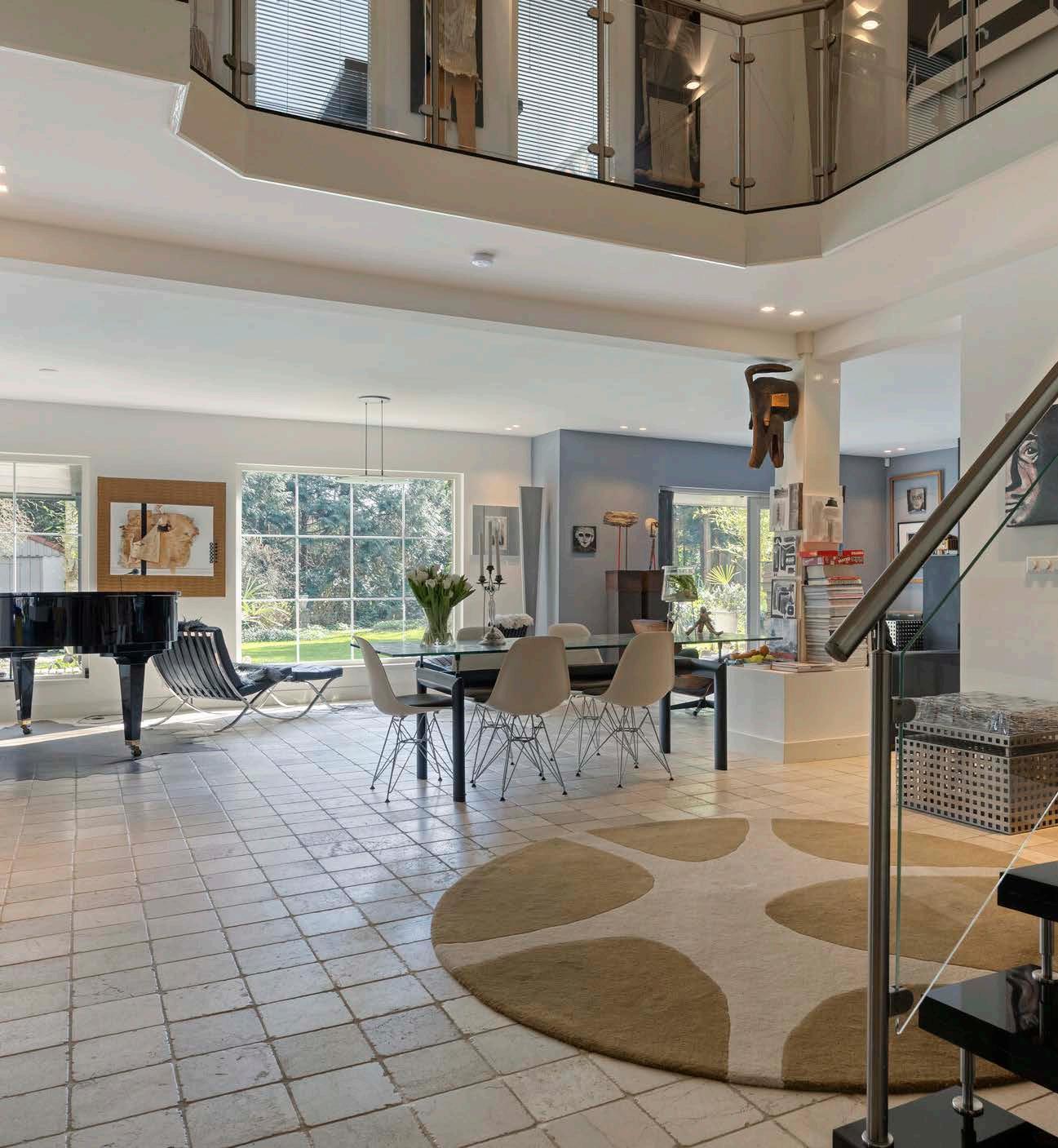 De woonkamer – het absolute hart van deze woning – is ontstaan door het wegwerken van tussenwanden, zodat een megaruimte met veel natuurlijk licht en gezellige zithoekjes is ontstaan. De open haard en de vloerverwarming zorgen voor ultiem wooncomfort en nodigen uit tot ontspannen momenten