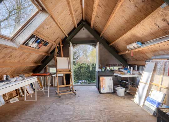 Een uniek onderdeel van dit landhuis is het vrijstaande bijgebouw, momenteel in gebruik als atelier. Deze degelijke ruimte biedt diverse mogelijkheden: creëer er een ideale B&B, een inspirerende kantoorruimte of extra woonruimte.