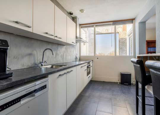 Vanaf de woonkamer is er doorloop naar de halfopen keuken. De keuken is functioneel ingericht in een rechte opstelling en beschikt over een inductiekookplaat, combi oven, vaatwasser en losse koelkast. Ook deze ruimte is bereikbaar via de hal.