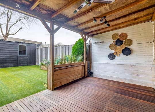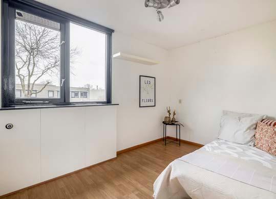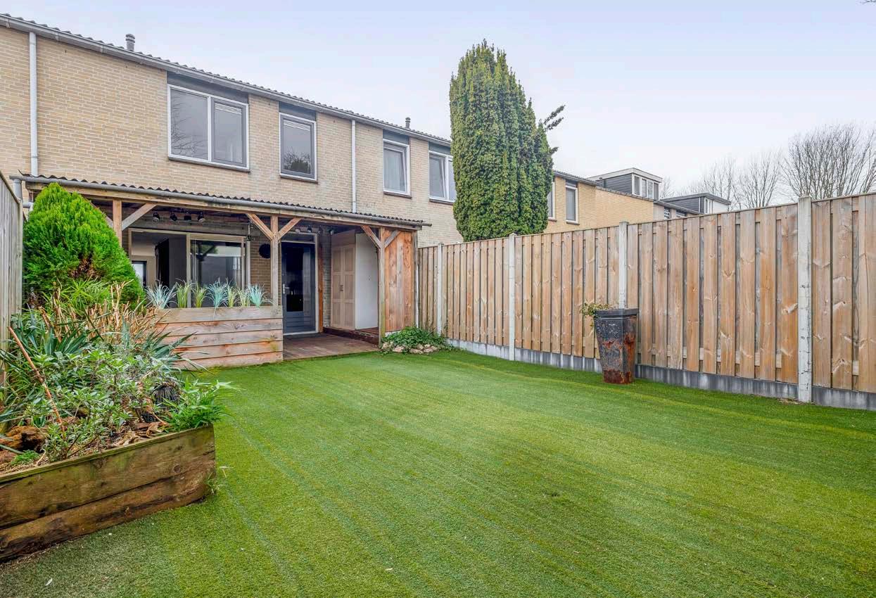 De achtertuin, gelegen op het noordoosten, nodigt uit om van de buitenlucht te genieten. Begin je dag met een kop koffie in de ochtendzon of zoek beschutting onder de praktische terrasoverkapping. De tuin is voorzien van een achterom en een berging waar je voldoende plek hebt voor bijvoorbeeld fietsen en tuingereedschap.