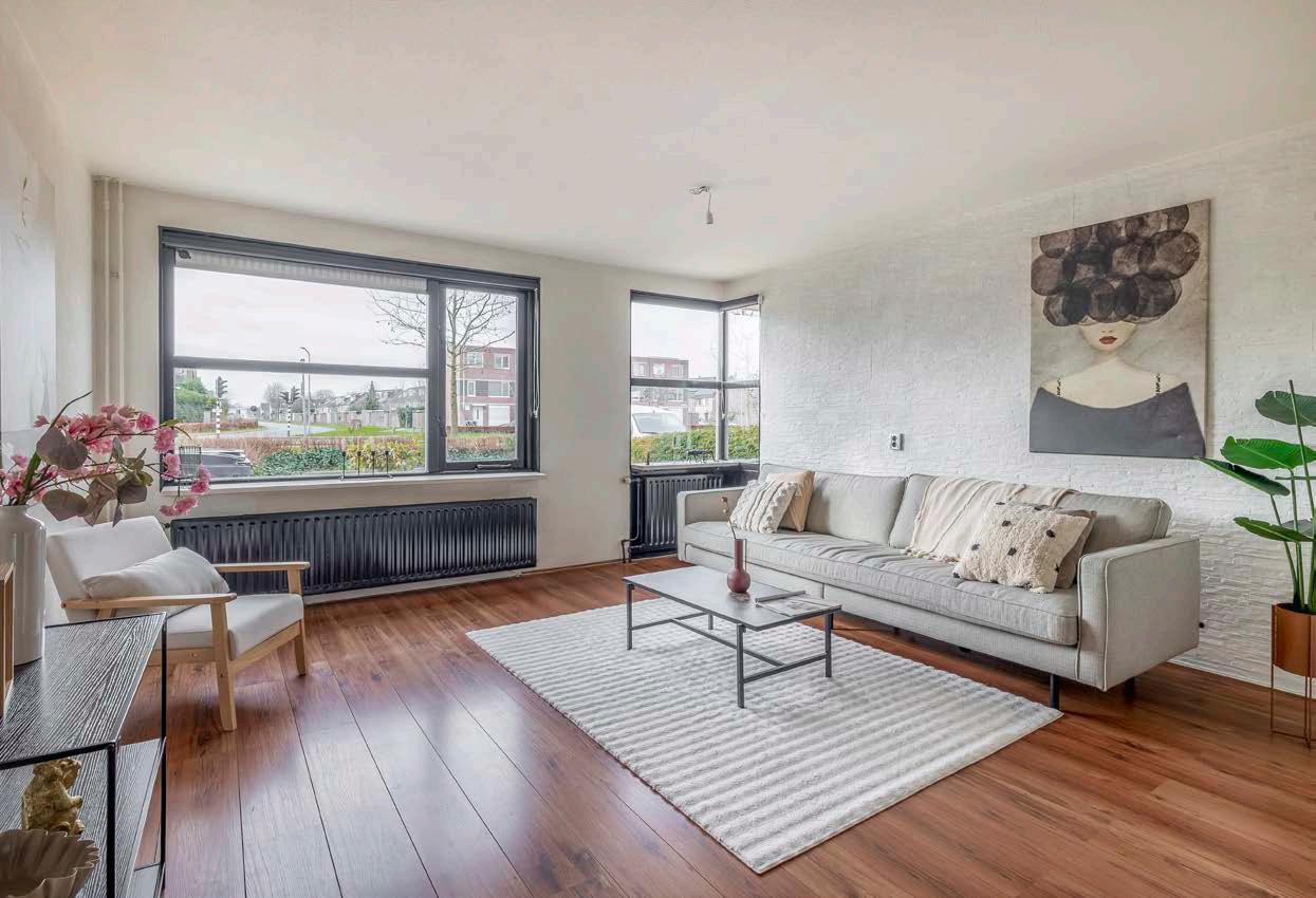 Je stapt binnen via de hal, waar je een ruime garderobekast, het toilet en de trapopgang vindt. Vanuit de hal kom je direct in de lichte, woonkamer. Dankzij grote raampartijen zowel aan de voor- als aan de achterkant wordt de ruimte heerlijk verlicht. De schuifpui geeft directe toegang tot de diepe achtertuin.