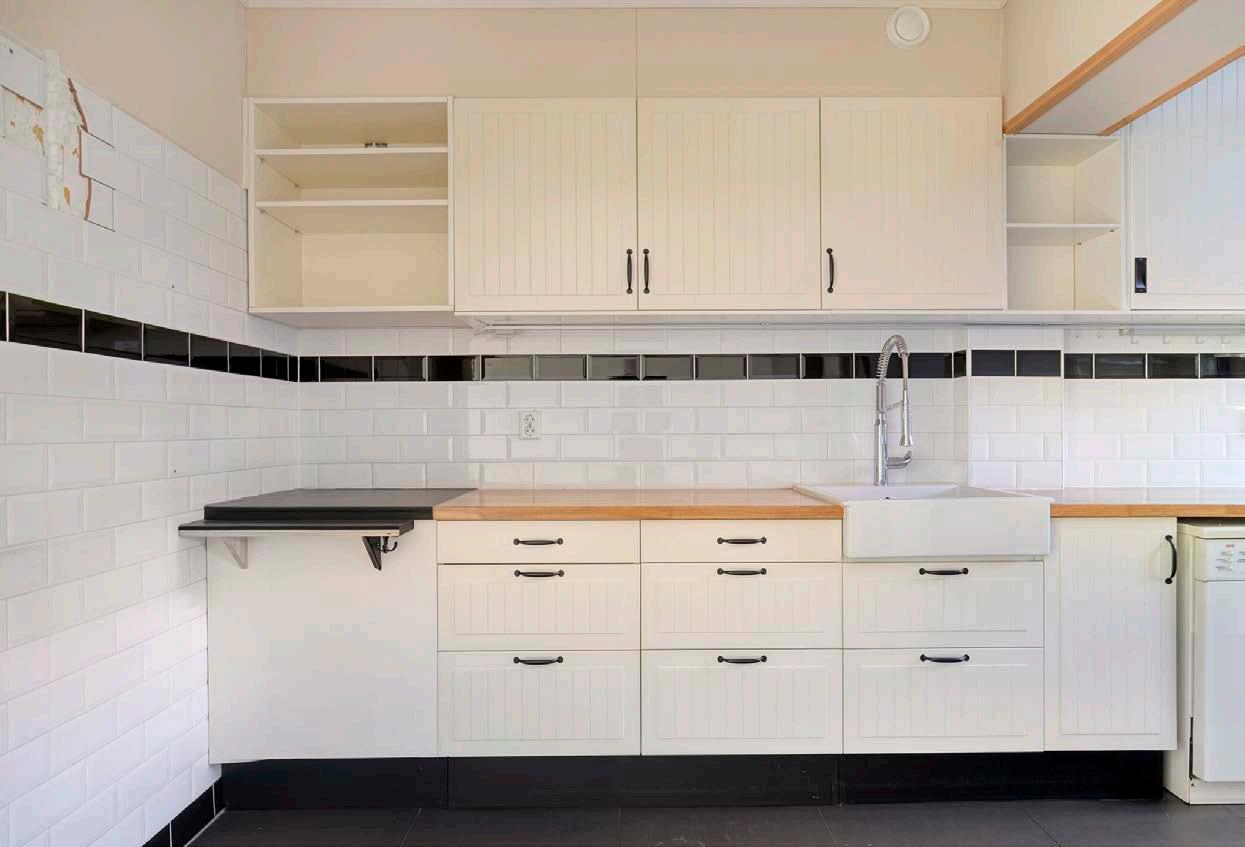 De open keuken is praktisch ingedeeld en tevens voorzien van een handige wasmachine-aansluiting. Dankzij de open indeling blijf je in contact met je gezin of gasten.