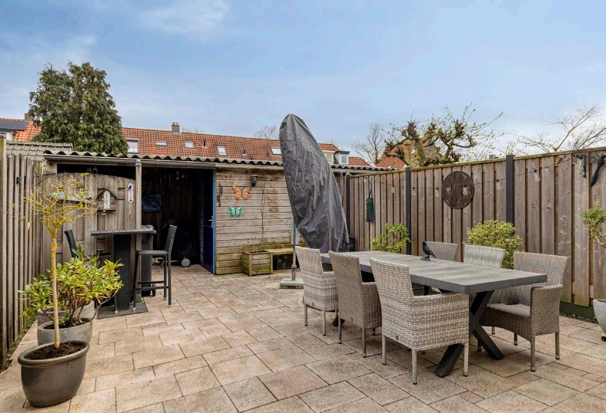 De onderhoudsvriendelijke tuin is gelegen op het zuidoosten, waardoor je optimaal kunt profiteren van de zon. De indeling van de tuin is praktisch, met voldoende ruimte om te ontspannen. Daarnaast is er een berging aanwezig voor extra opslag en een overkapping voor fietsen of tuinmeubels.