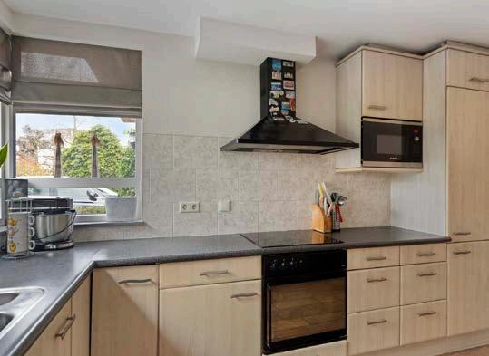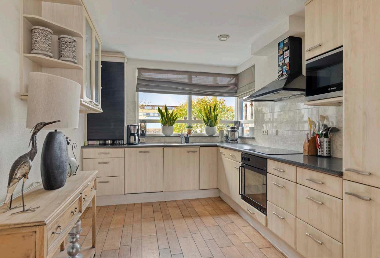 De keuken is voorzien van inbouwapparatuur, waaronder een inductiekookplaat (2025), een koelkast (2024), een vaatwasser (2020), een vriezer, afzuigkap, oven en magnetron. De efficiënte indeling biedt voldoende werk- en opbergruimte. Een ideale plek om maaltijden te bereiden en samen te komen.