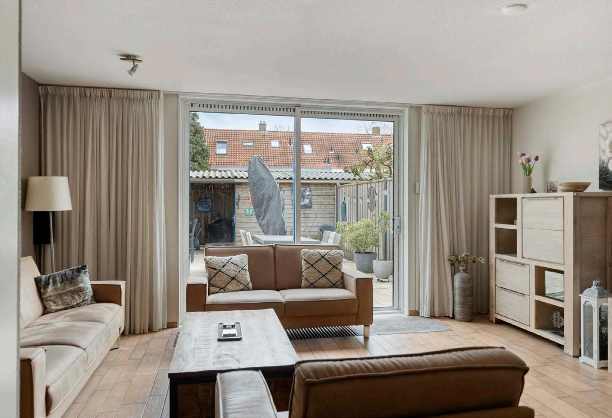 De woonkamer is licht en royaal opgezet. Dit maakt de ruimte prettig en uitnodigend, perfect om te ontspannen, samen te zijn met het gezin of gasten te ontvangen. De hoekligging van de woning zorgt daarnaast voor een gevoel van rust en extra privacy, wat bijdraagt aan het woongenot.