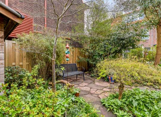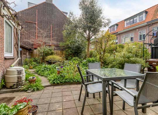 De tuin voelt als een oase verscholen in het stadsleven. Gelegen op het oosten en heerlijk groen, is het hier iedere ochtend genieten van de eerste zonnestralen. Het terras is de ideale plek voor een kop koffie in de ochtendzon, terwijl de houten blokhut achter in de tuin ruimte biedt voor opslag en het stallen van fietsen. De zij-ingang maakt het bijzonder praktisch – ideaal voor fietsen, tuinieren of als toegang voor gasten.