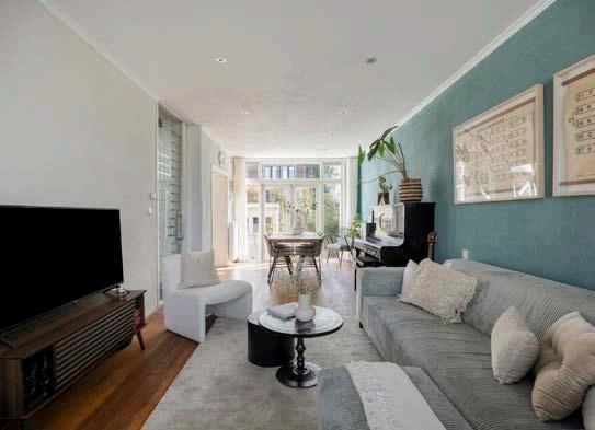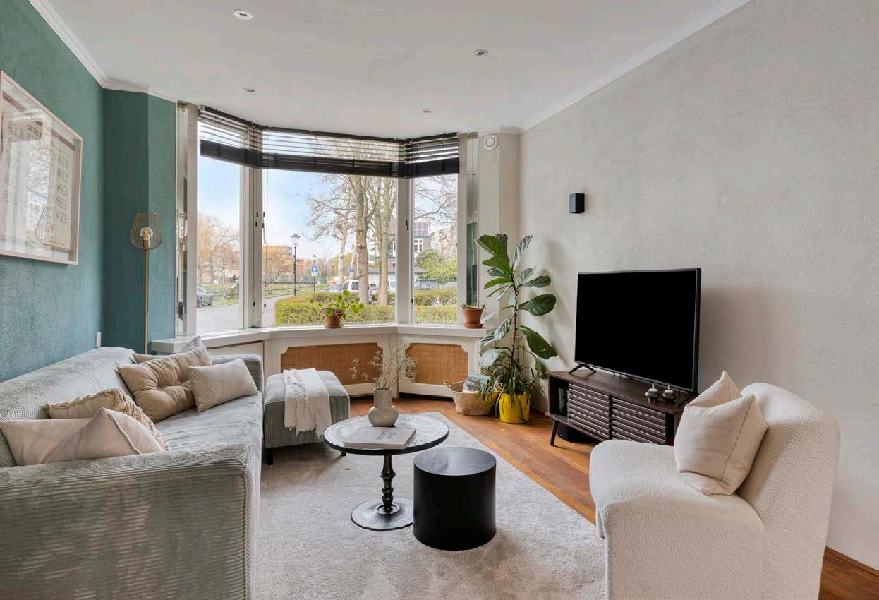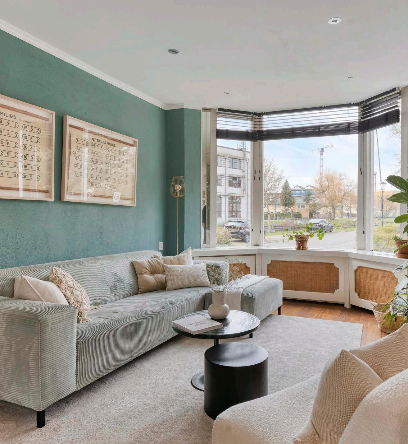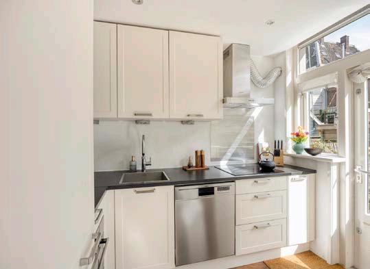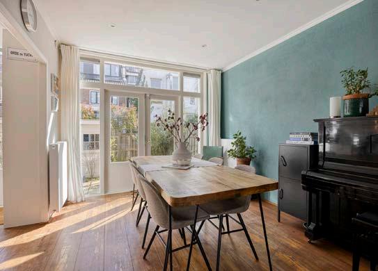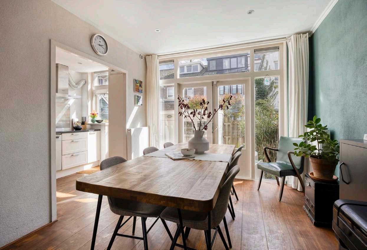 In de woonkamer zit je heerlijk met achter de tuindeuren (die ‘s zomers bijna altijd open staan!) en voor het uitzicht op de groene Vaartkade en Herengracht. De tuin voor en achter is groen en goed voor de bijen.