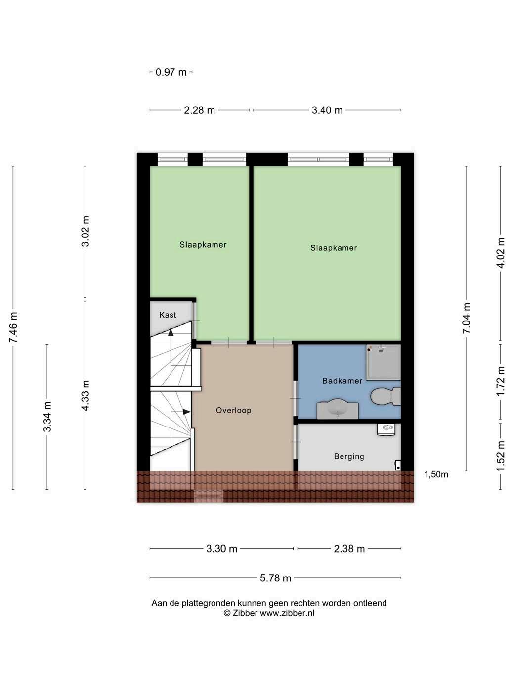 Boven vind je op de eerste verdieping twee fijne slaapkamers waarvan één met royale afmetingen. Ruimte genoeg voor een kingsize bed, een thuiskantoor of misschien wel die inloopkast waar je altijd al van droomde. De badkamer is netjes uitgevoerd met een douchecabine, een tweede toilet en een wastafelmeubel. Er is zelfs een aparte ruimte waar je witgoedapparatuur perfect uit het zicht geplaatst staat – alles praktisch en slim ingedeeld.