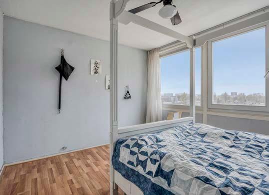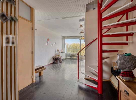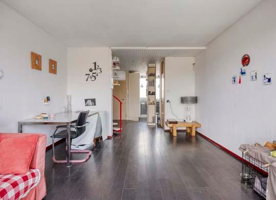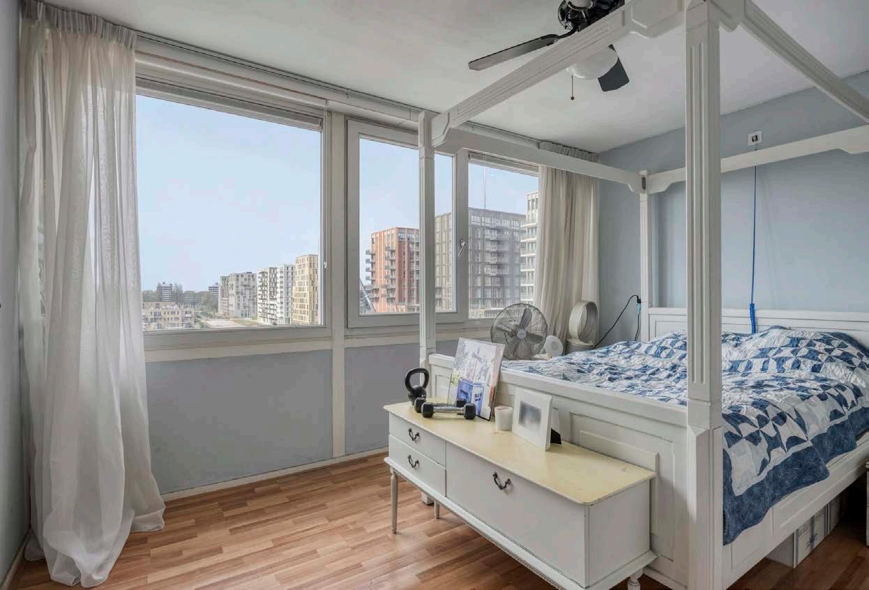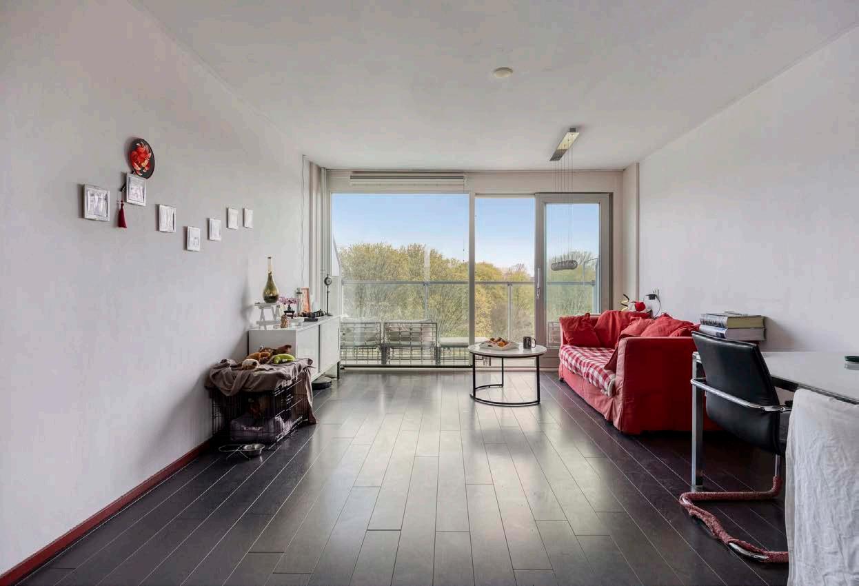 De woonkamer op de benedenverdieping voelt licht en uitnodigend aan, met hoge ramen en een deur naar het zonnige balkon. Zie het al voor je: ‘s ochtends wakker worden van de zonnestralen terwijl je geniet van een verse kop koffie, met de serene Sloterplas als jouw achtergrond.