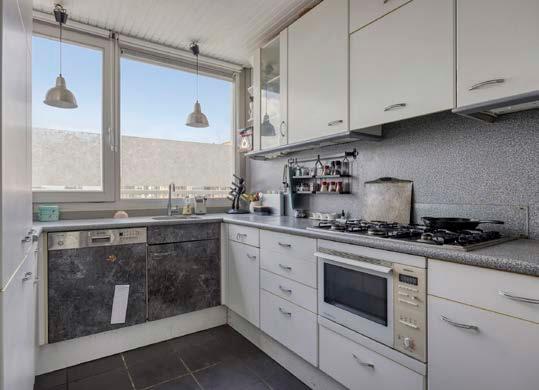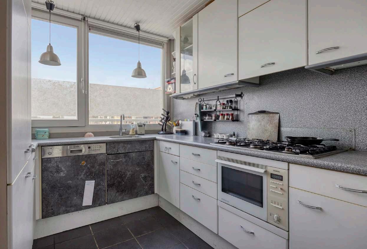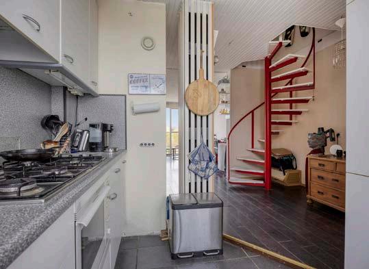 De halfopen keuken is stijlvol en praktisch ontworpen, met moderne apparatuur die koken een feest maakt. Hier vind je een koelvriescombinatie, een vaatwasser, een combi-oven en een 4-pits gaskookplaat. Of je nu uitgebreid kookt voor jezelf of voor vrienden, je hebt hier alle ruimte en gemak om culinaire hoogstandjes te creëren.