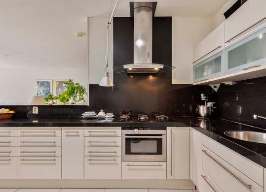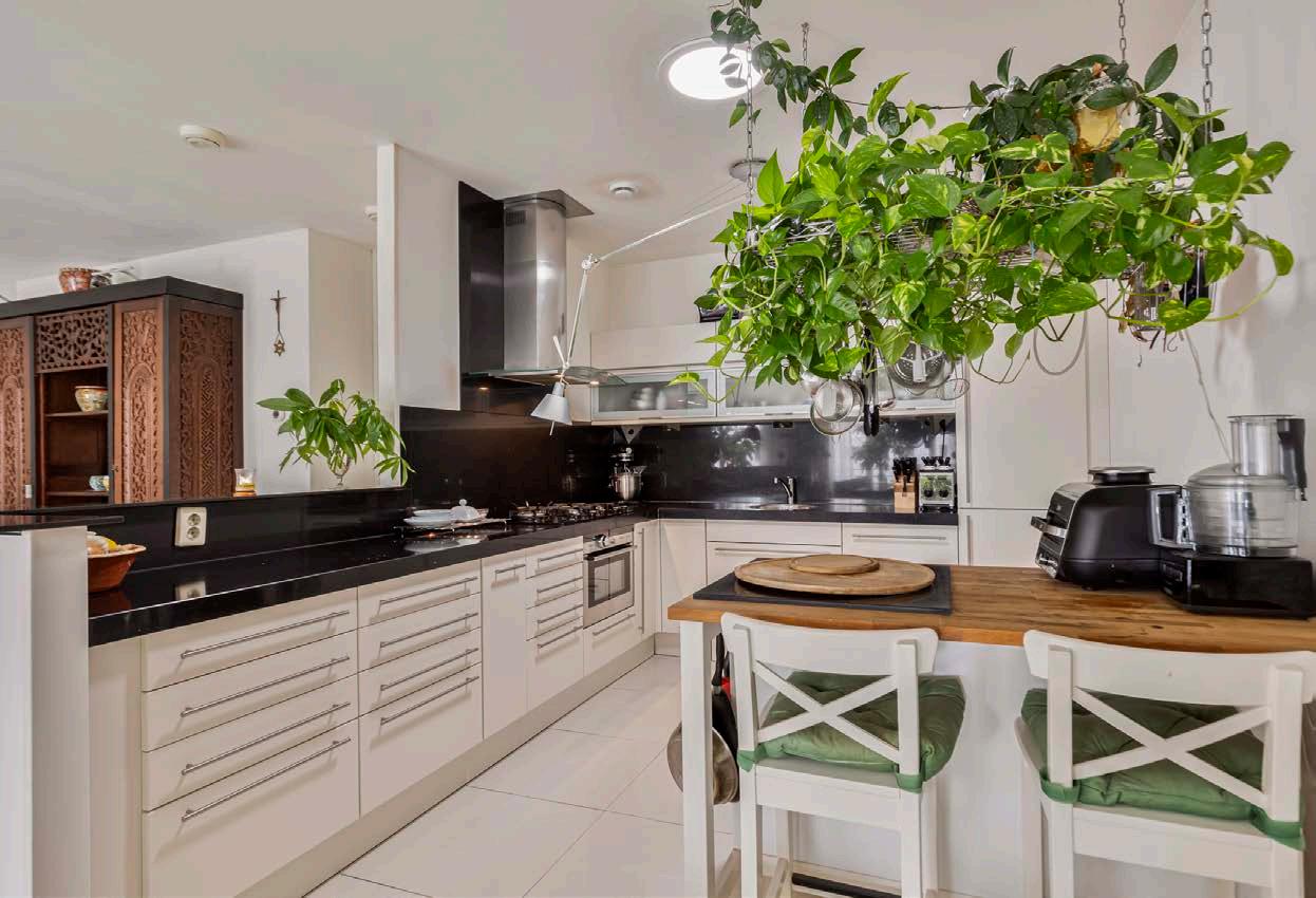De open keuken is strak afgewerkt en voorzien van moderne apparatuur, waaronder een koelvriescombinatie, combi-oven, gaskookplaat, vaatwasser en afzuigkap. Dit maakt koken een plezierige ervaring, ongeacht of je alleen een snelle maaltijd wilt bereiden of uitgebreid wilt dineren.