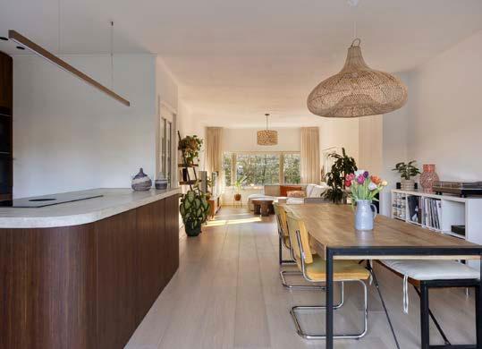 Deze moderne keuken met strakke organische lijnen is een pareltje om te zien en praktisch in gebruik. De modern organisch vormgegeven keuken is voorzien van echte natuurproducten, zoals bamboe keukenfronten en een op maat gemaakt betonnen keukenblad met daarboven een strakke designlamp. Daarnaast beschikt de keuken over een Bora inductiekookplaat, combiovens, koelkast, vriezer, veel opbergruimte en een Quooker, die ook bruisend water geeft.