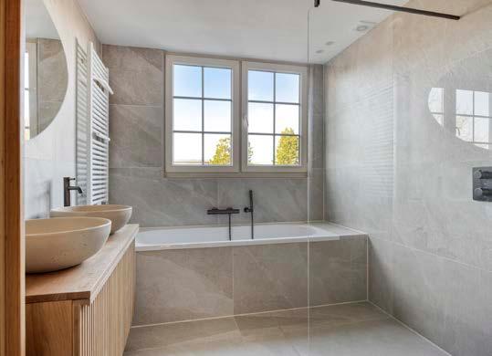 De moderne badkamer is uitgerust met een ligbad, inloopdouche en dubbele wastafel, én vloerverwarming die zorgt voor extra comfort. Hier kom je echt tot rust!