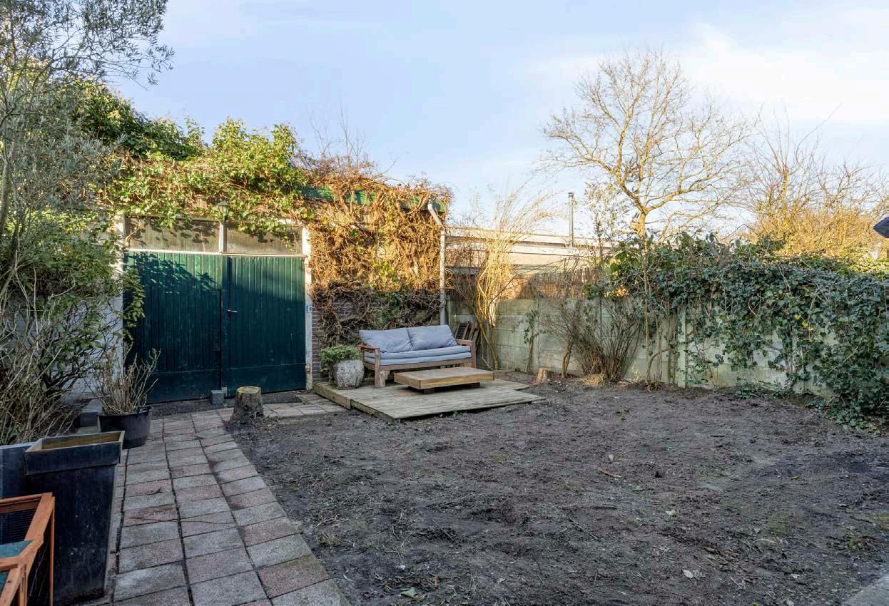 Vanuit de keuken en woonkamer stap je zo de achtertuin in via een grote schuifpui, die bovendien zorgt voor heerlijk licht in de woning. De tuin geeft het gehele jaar door op verschillende plekken volop zon en heeft alle ruimte om naar wens in te delen.
