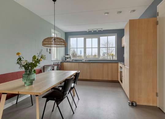 In de zomer pakten we de sup of een bootje en in de winter schaatsten we zo de plas op. Met om de hoek het wandel- en speeleiland, het kindcentrum en op fietsafstand het treinstation en het winkelcentrum. De jaren ‘30 architectuur met de karakteristieke roedeverdeling in de vele ramen maakt het huis uniek, geeft het sfeer en bovendien veel daglicht. ‘s Ochtends ontbijten we in de lichte uitbouw met uitzicht over het water waar je de zon ziet opkomen. Vloerverwarming op de begane grond, een houtkachel in de woonkamer en een houten keuken zorgen voor comfort en sfeer.